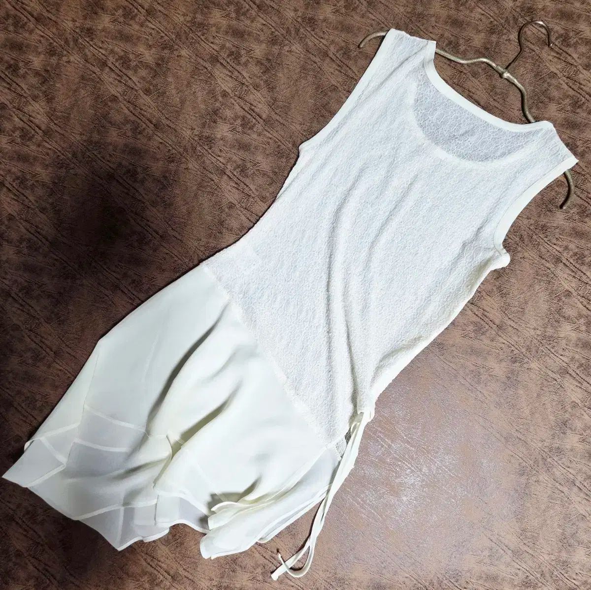油 layered slip mini dress cream