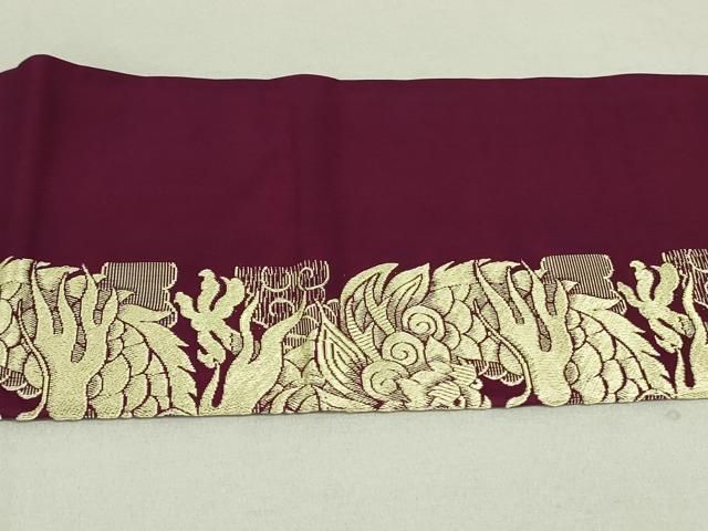 平和屋着物 アンティーク 大正ロマン 本場筑前博多織 全通柄九寸名古屋帯 帯反物 龍 間道 金糸 正絹 ob