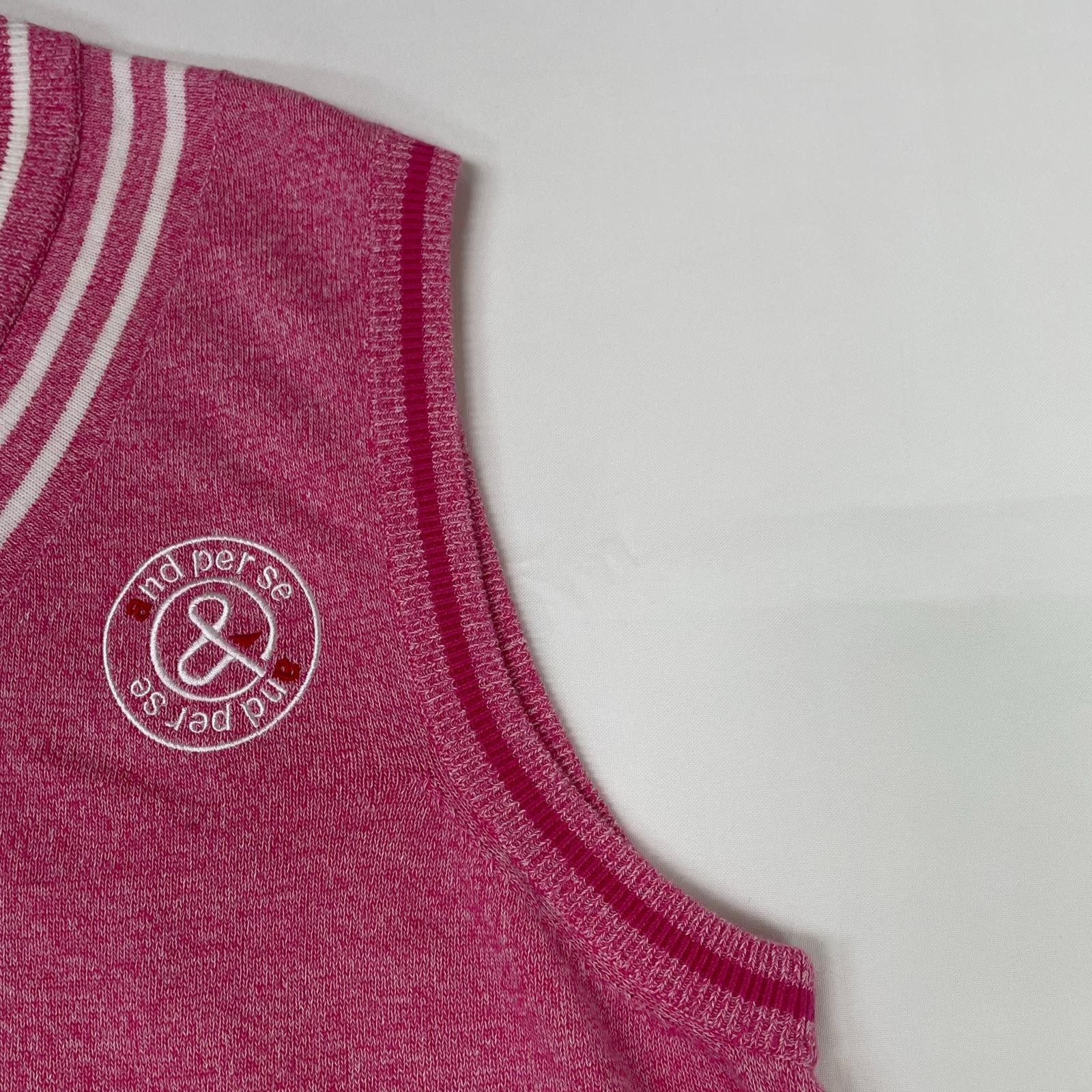 メンズ アンパスィ and per se ベスト LL ピンク Vネック ニット ボーダー