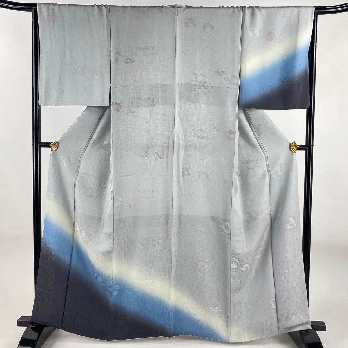 付下げ 身丈162.5 cm 裄丈65.5 M 袷 袋帯セット 地紋 裾ぼかし 灰色 正絹 秀品