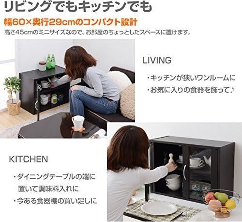 商品 キッチン キャビネット 収納 ガラス扉 食器棚 コンパクト 幅60×奥行29×高さ45 cm 組立品 山善 YAMAZEN ホワイト CCB-4560 WH