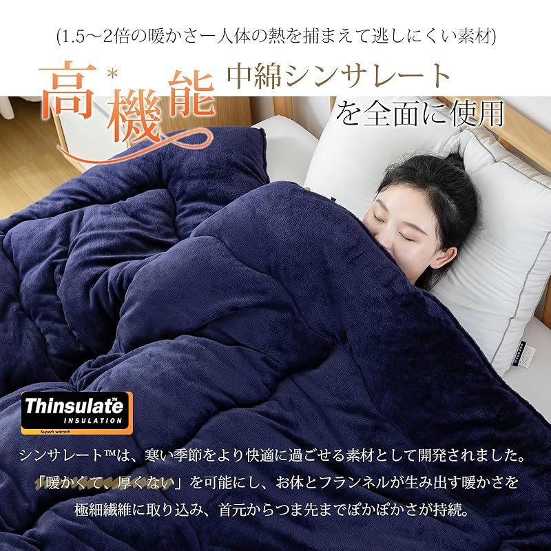 fuwawa 掛け布団 シングル 冬 シンサレート 掛け毛布 アルミシート入り5層構造 フランネル 軽くてあったか 高保温 断熱性 中綿素材シンサート使用 従来商品よりも2倍の保温機能 静電気防止 抗菌防臭防ダニ加工 丸洗い 冬用 1