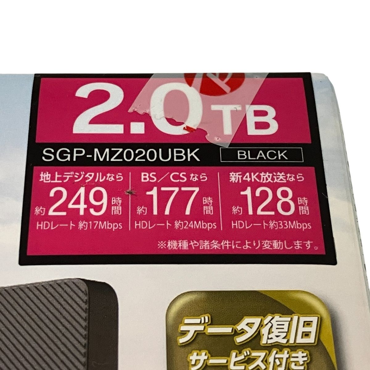 こちらは「SEAGATE 外付けHDD 2TB SGP-MZ020UBK BLACK 未使用 」でございます。
