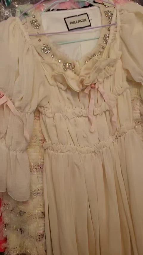 輸入クリームフリル ONE PIECE 出品。クリーム カラーに NECK LINE 沿って キュービック が 박혀있어 華やかさを 加えました。リボン ディテール まで 愛らしい ムード の ONE PIECE です。