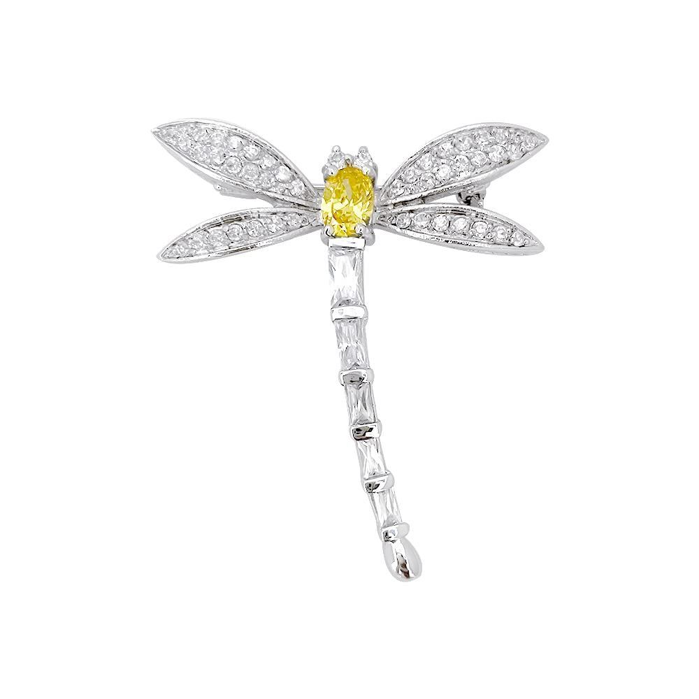 見事なビーデザインのカナリアシルバートーンブローチ。 ミツバチの羽は金の縁のメッキで囲まれ、ラウンドカットの透明なCZストーンを誇示しています。