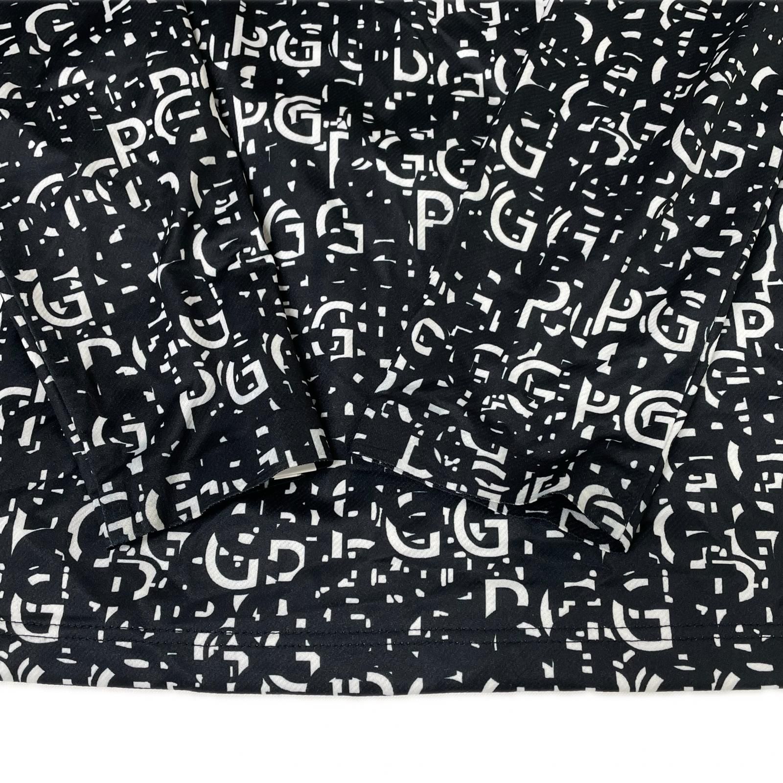 メンズ ピージージー PGG 長袖シャツ 5 L 黒×白 ハーフジップ モックネック ロゴ総柄 薄手