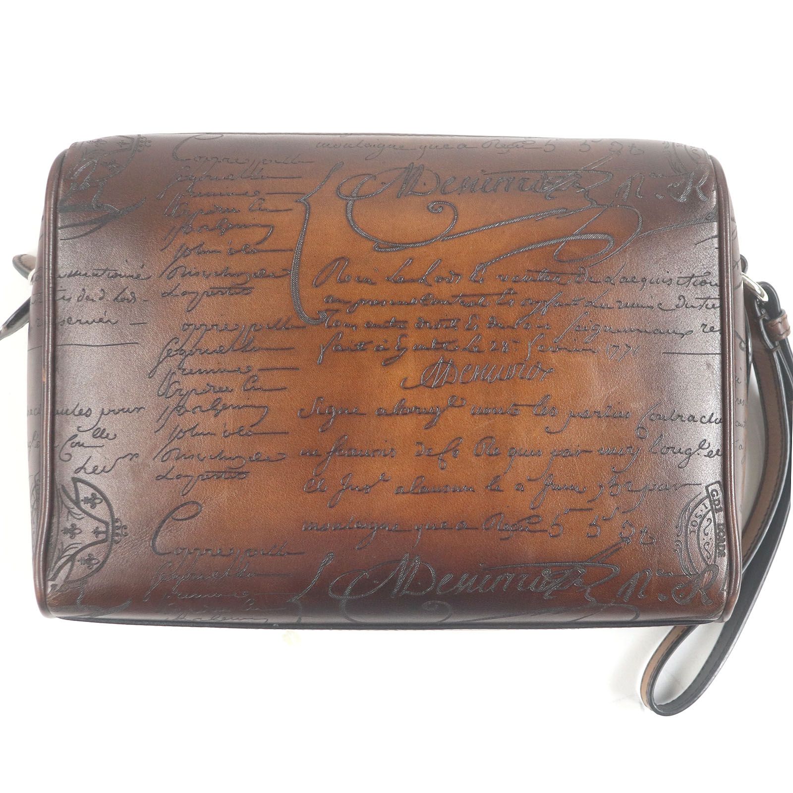 BERLUTI ベルルッティ 製 ローズウッド レザー カリグラフィ スクリット ストラップ付き ポーチ クラッチバッグ セカンドバッグ CACAO INTENSO イタリア製 メンズ