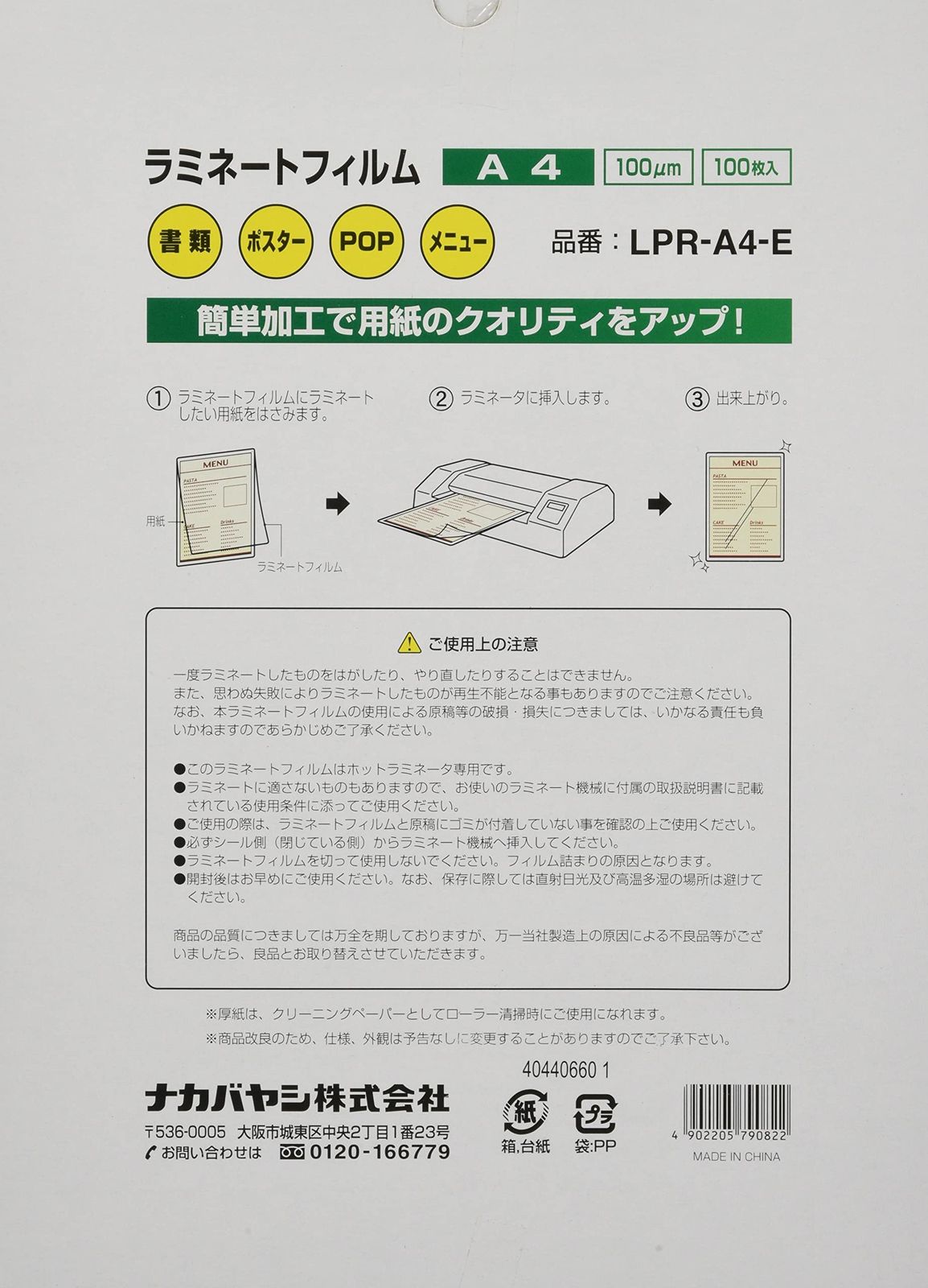 写真・切り抜き・POP・メニュー等のコーティングに適合
