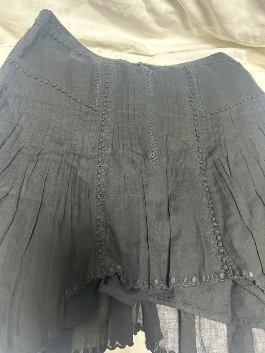 これはイザベルマランの黒いミニスカートです。優しいシワとレースのディテールが見どころです。特別な欠陥もなく綺麗な状態傷。ご不明な点がなければ、すぐに安心してお支払いいただけます!
