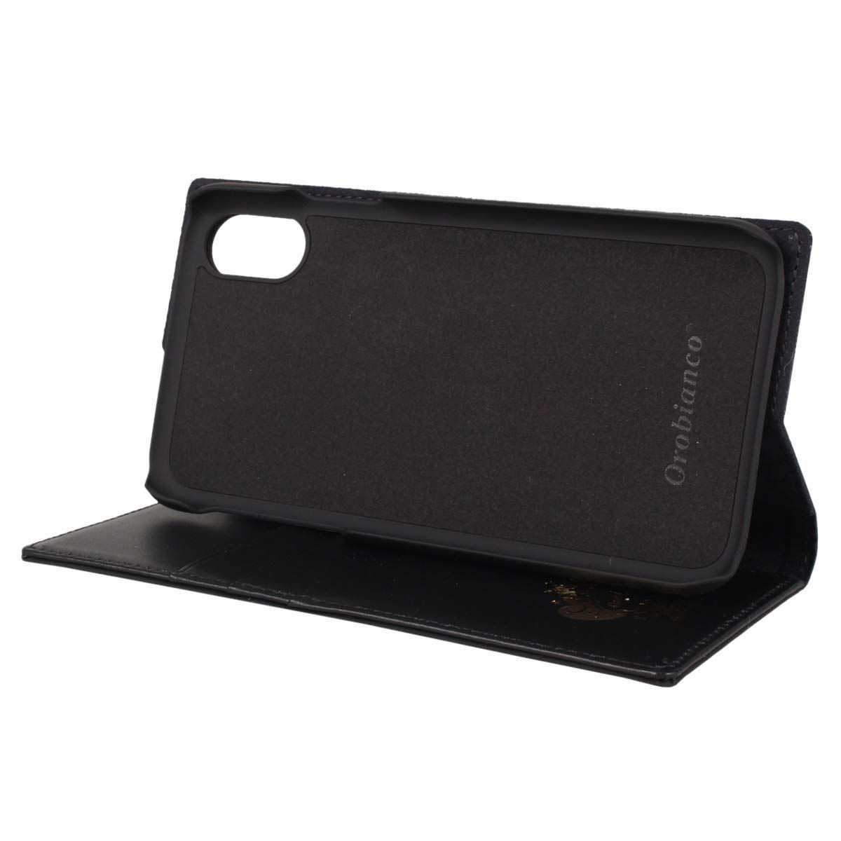 ガラス仕上げの牛革にゴムのような手触りの艶消し感触剤を塗り込むことでゴム引きのような風合いを出す特殊マットガラス加工のレザーを採用。イタリア発ブランドの「Orobianco」を日本の熟練された革職人が丁寧に裁断・縫製・磨きをした最高技術を盛り込んだ逸品。表面下部分にOrobinacoの定番ロゴがゴールドの箔押しで表現されて上品な仕上がりになっています。クレジットカードやICカードなどが3枚収納可能なカードポケットと大型ポケットが1つ搭載されています。また、動画視聴に便利なスタンド機能が搭載されています。ケース中面にはOrobiancoのロゴが配されたマイクロファイバーシートが敷かれ収納する端末を傷つけないよう配慮されています。