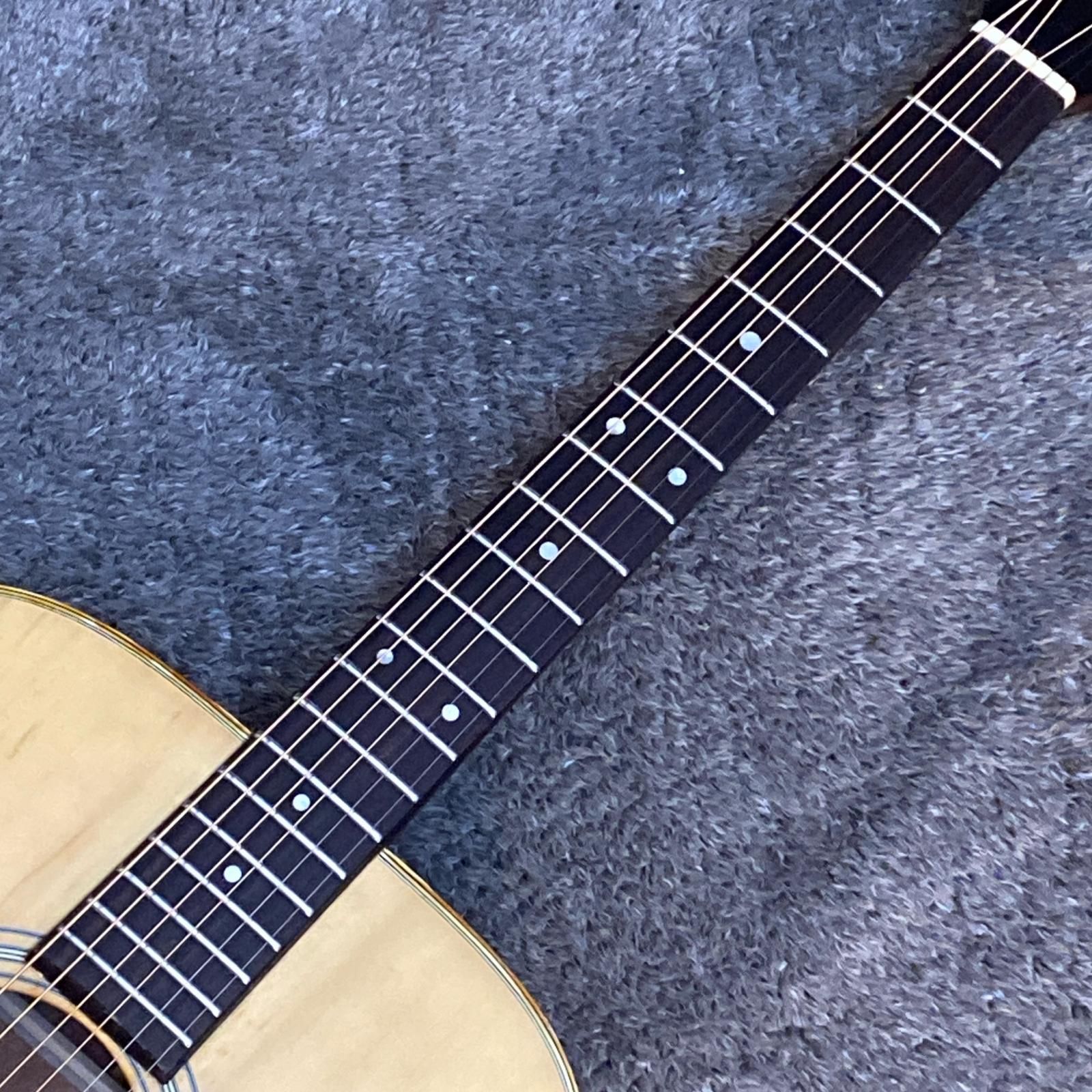 ・当時、高峰楽器製作所によって1970年代の前半頃に作られていたものです。当時の国産ギターのなかでも独自の存在感を放つモデルです。スプルーストップ、サイド&バックにローズウッド、ネックにマホガニーといった安定感のある仕様。指板にローズウッドをを採用し、ストローク時にはパワフルな低音と温かさを醸し出し、フィンガーピッキングでのアルペジオは繊細で澄んだ倍音を心地よく響かせます。ネックのシェイプはやや丸みのあるタイプで手に馴染みやすいものとなっています。ヒールキャップが欠損していたため貼りなおしてあります。ネックはほぼストレートで、トラスロッドも余裕あり、フレットも残り7~8割残っており、まだまだ現役でお使い頂ける一本です。