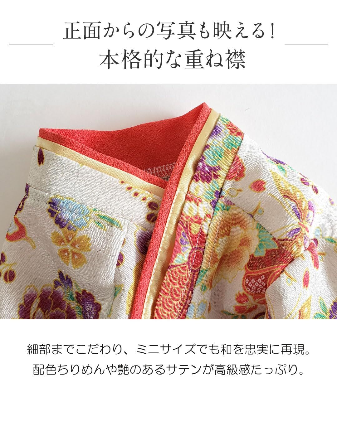 お正月や初詣、七五三や二十歳のお祝いなど 様々な記念日にぴったりです!おしゃれな着物デザイン♪上質なちりめんで素材にもこだわりました。