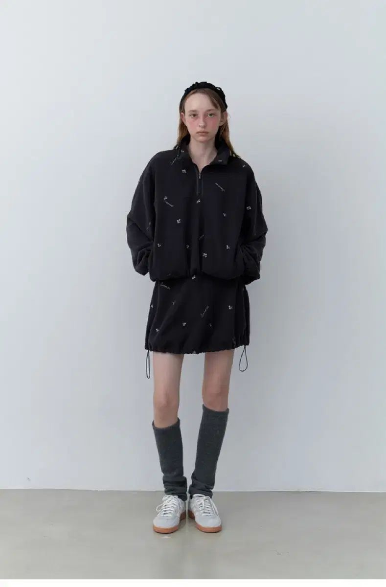 チャコール カラーに銀糸 ロゴが入っておりユニークです。裾シャーリングで調節可能です。