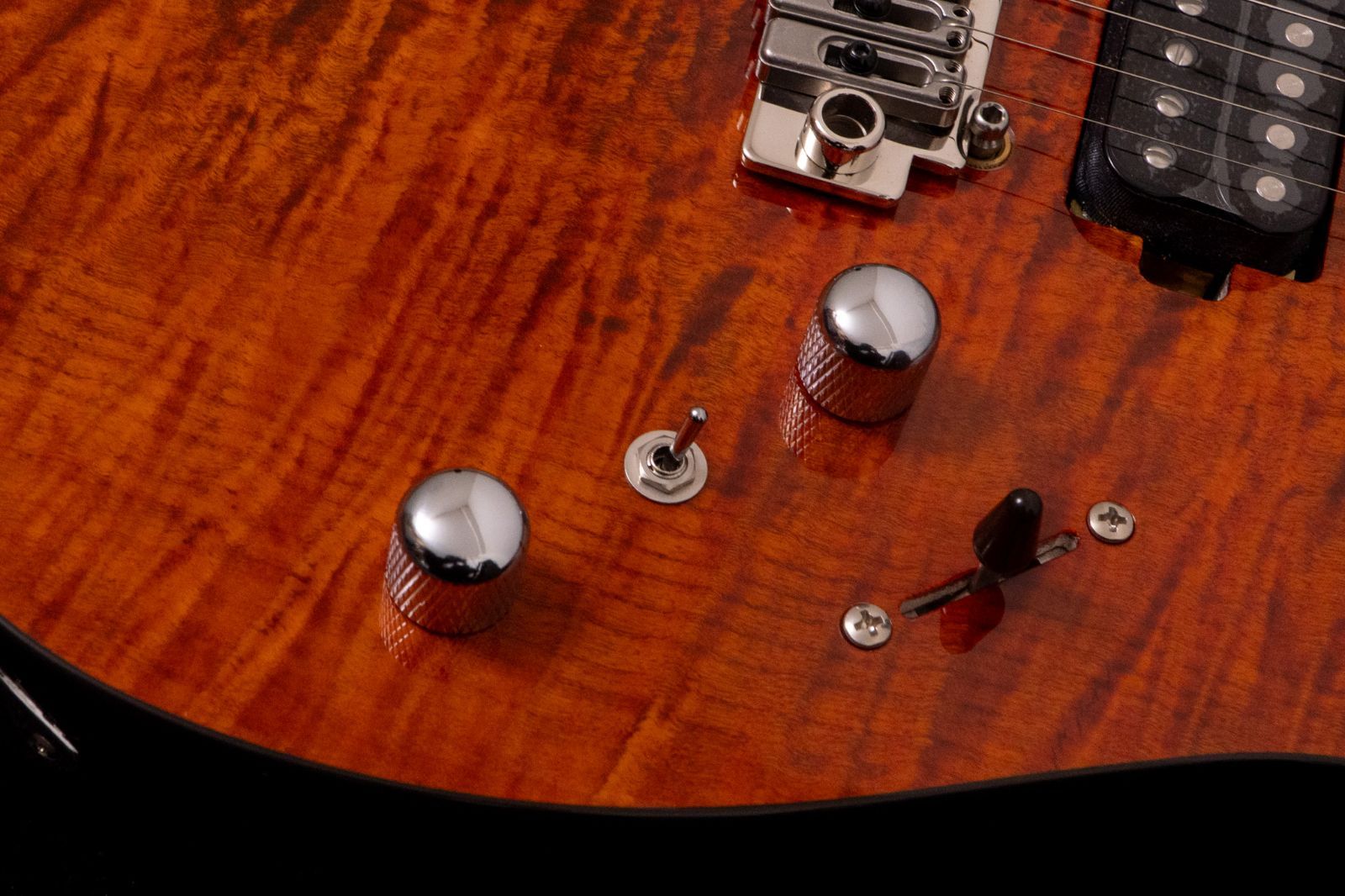 ボディトップには美しいく塗装されたフレイムメイプルが贅沢に使用され、