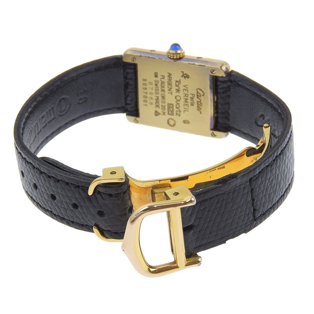 CARTIER カルティエ マストタンクSM ヴェルメイユ cal.057 シルバー925×レザー ゴールド クオーツ アナログ表示 レディース 白文字盤 腕時計