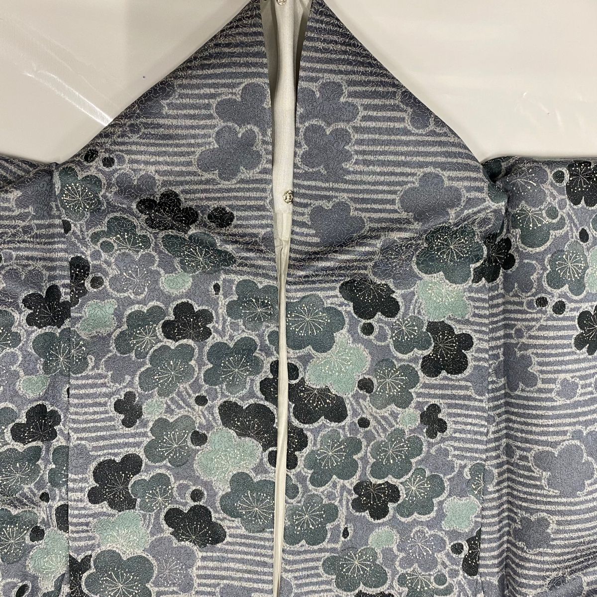 小紋 身丈163 cm 裄丈68 L 袷 梅 縞 金通し 灰色 正絹