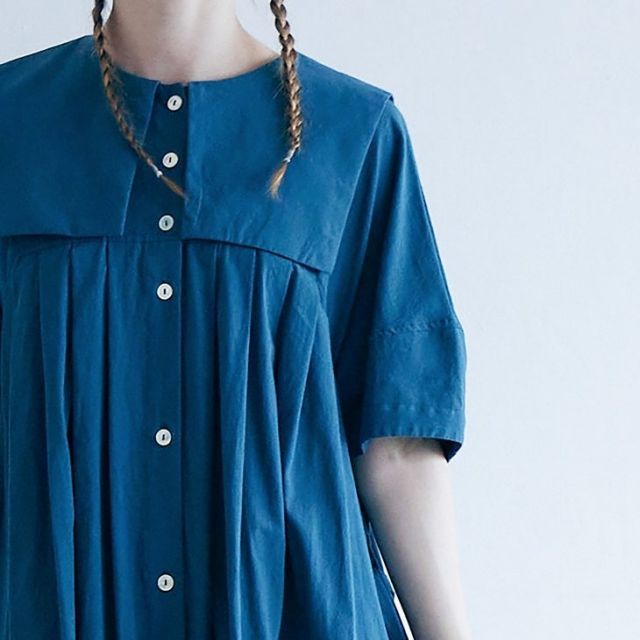 天日干しコットン・スクエアカラー・ワンピース(deepblue)