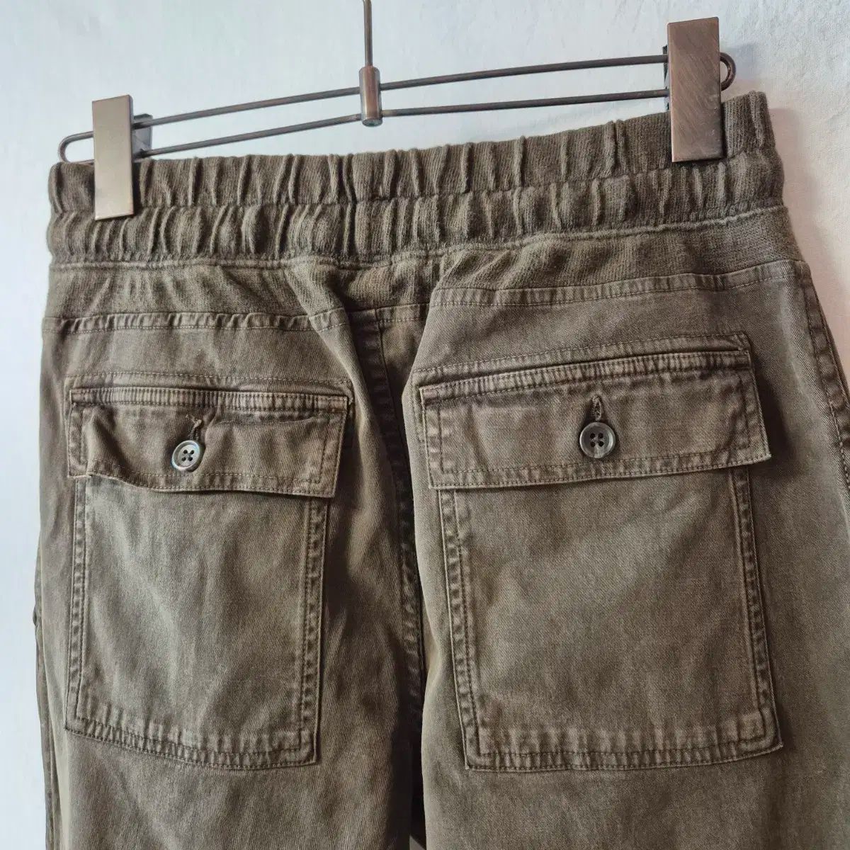 色はカーキで、ウエストにはストラップが付いています