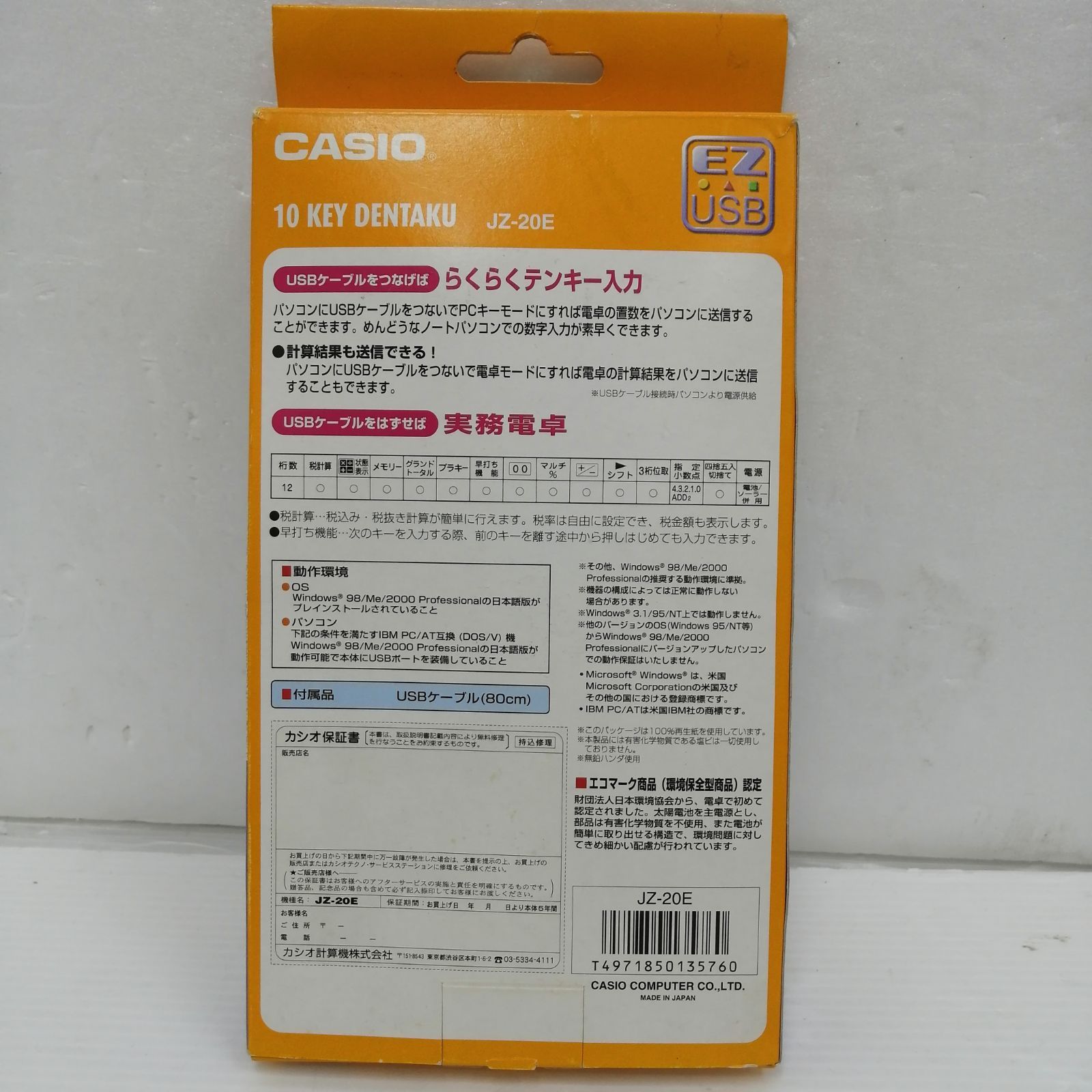 casio テンキー電卓 jz-20 e